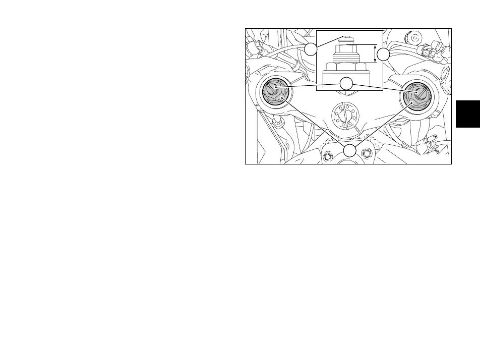 Turn the adjuster (1) on fork leg top with a flat screwdriver