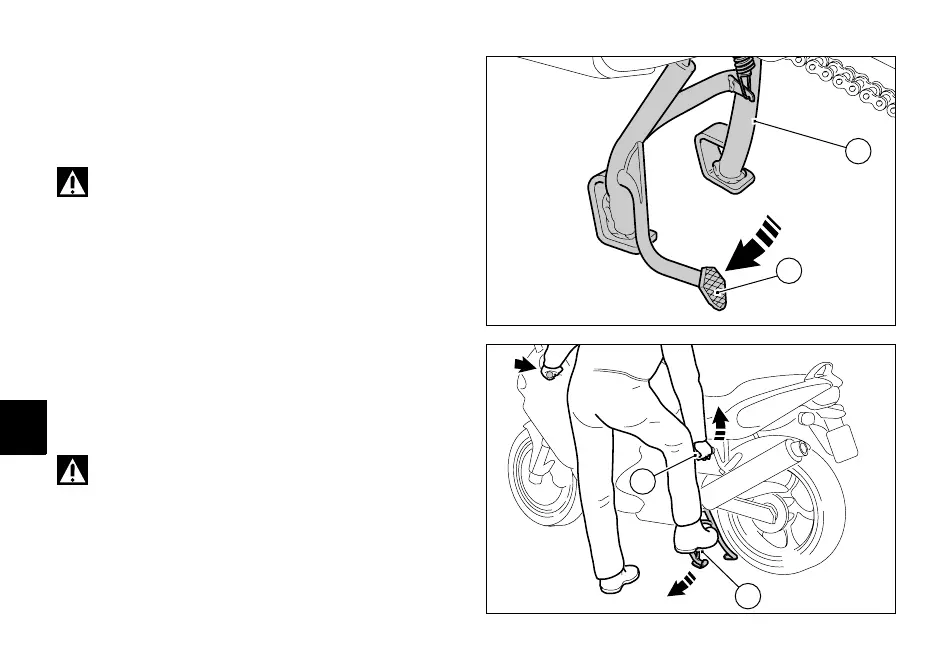 votre pied droit sur la surface d'appui (3) de la béquille