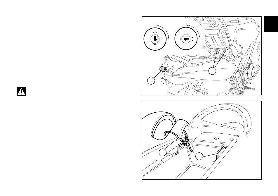 della parte posteriore della sella. Sfilare la sella dai fermi (1)