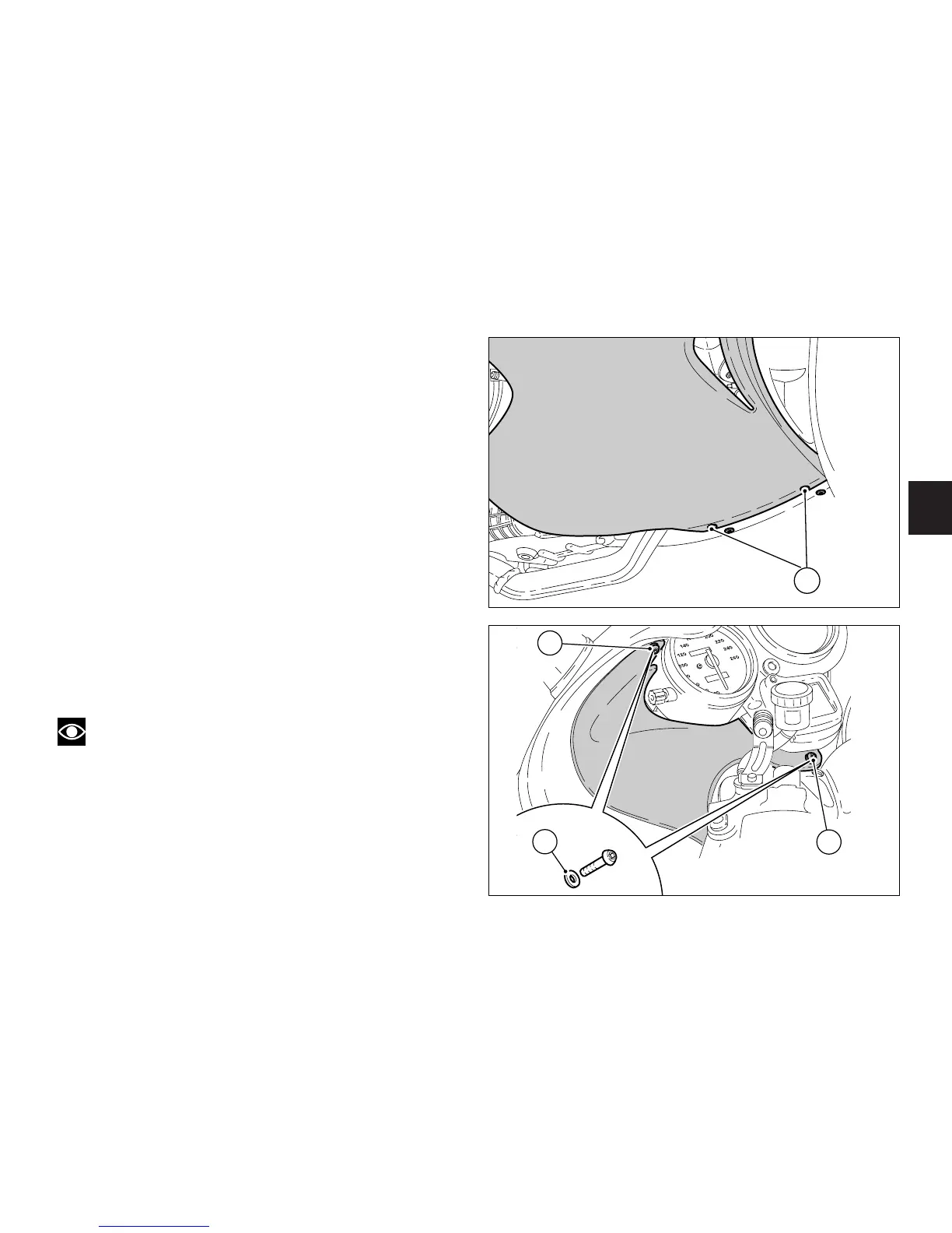 Unscrew 2 of the 4 lower screws (2, fig. 43) that hold the