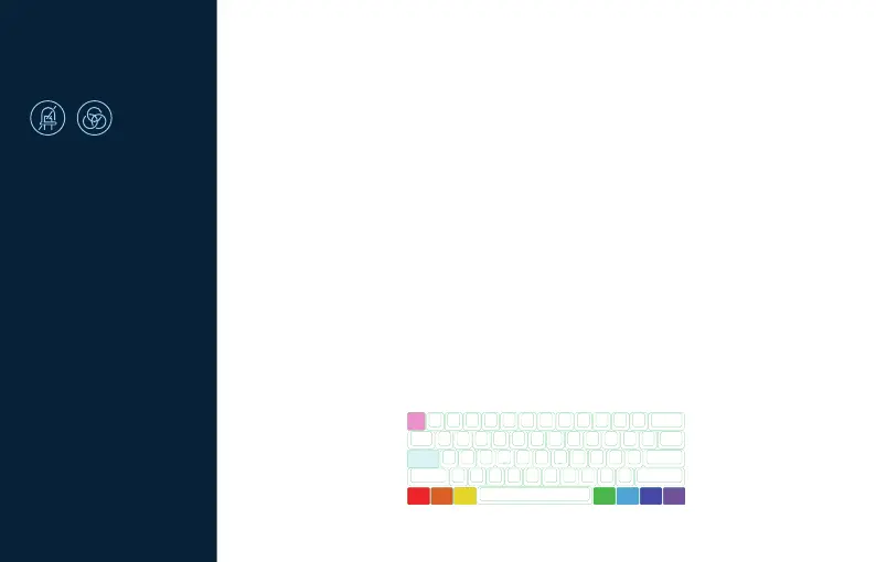 ● Press CapsLock again to resume CapsLock (it will be illuminated White for CapsLock).