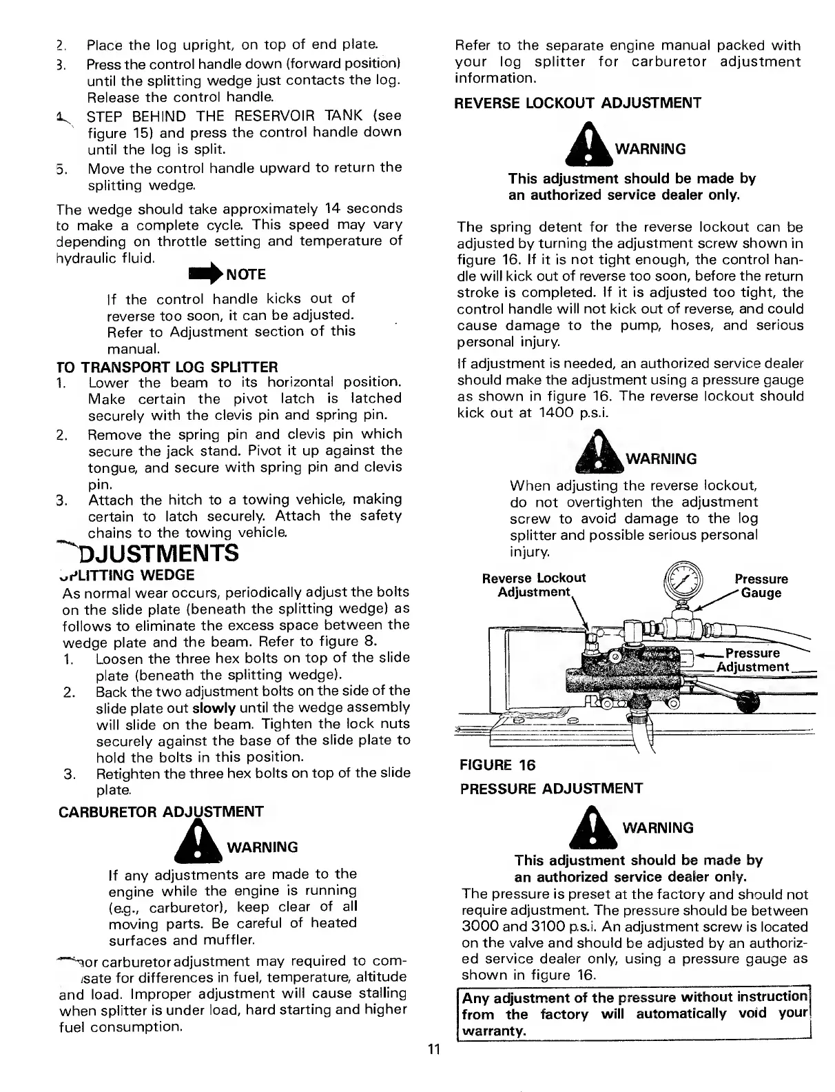 DUERR PRO/20 - OPERATION AND ADJUSTMENTS; LOG SPLITTER OPERATING STEPS