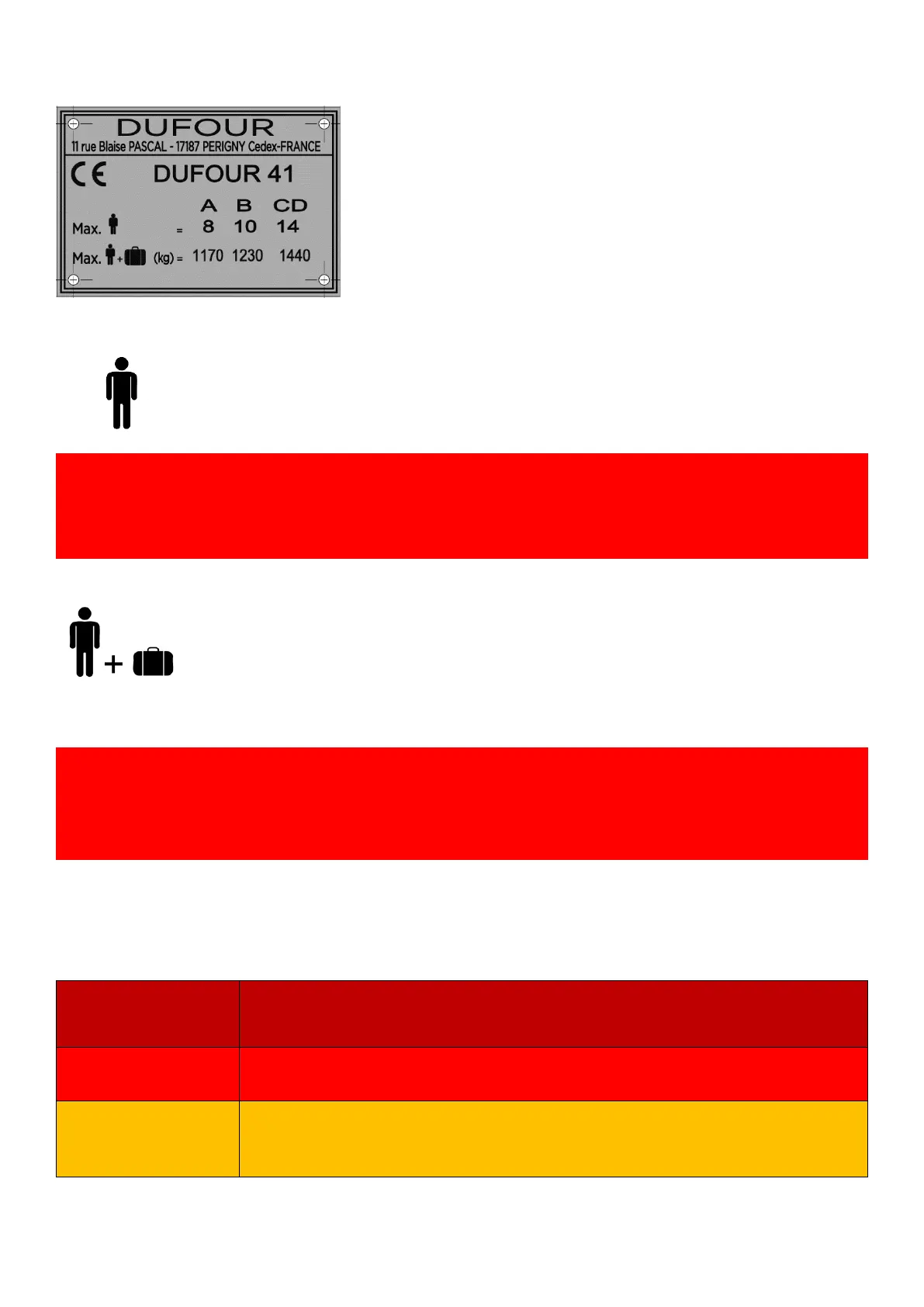 number of people on board, the total weight of people and equipment must never exceed the