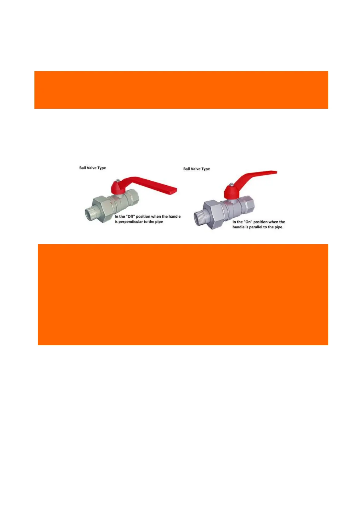 - CLOSED position: lever perpendicular to the valve body.