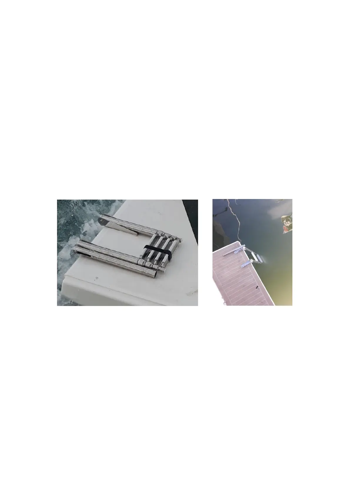 The DY CAT 48 is equipped with an onboard ladder that fits on the leftside transom. To use it, insert