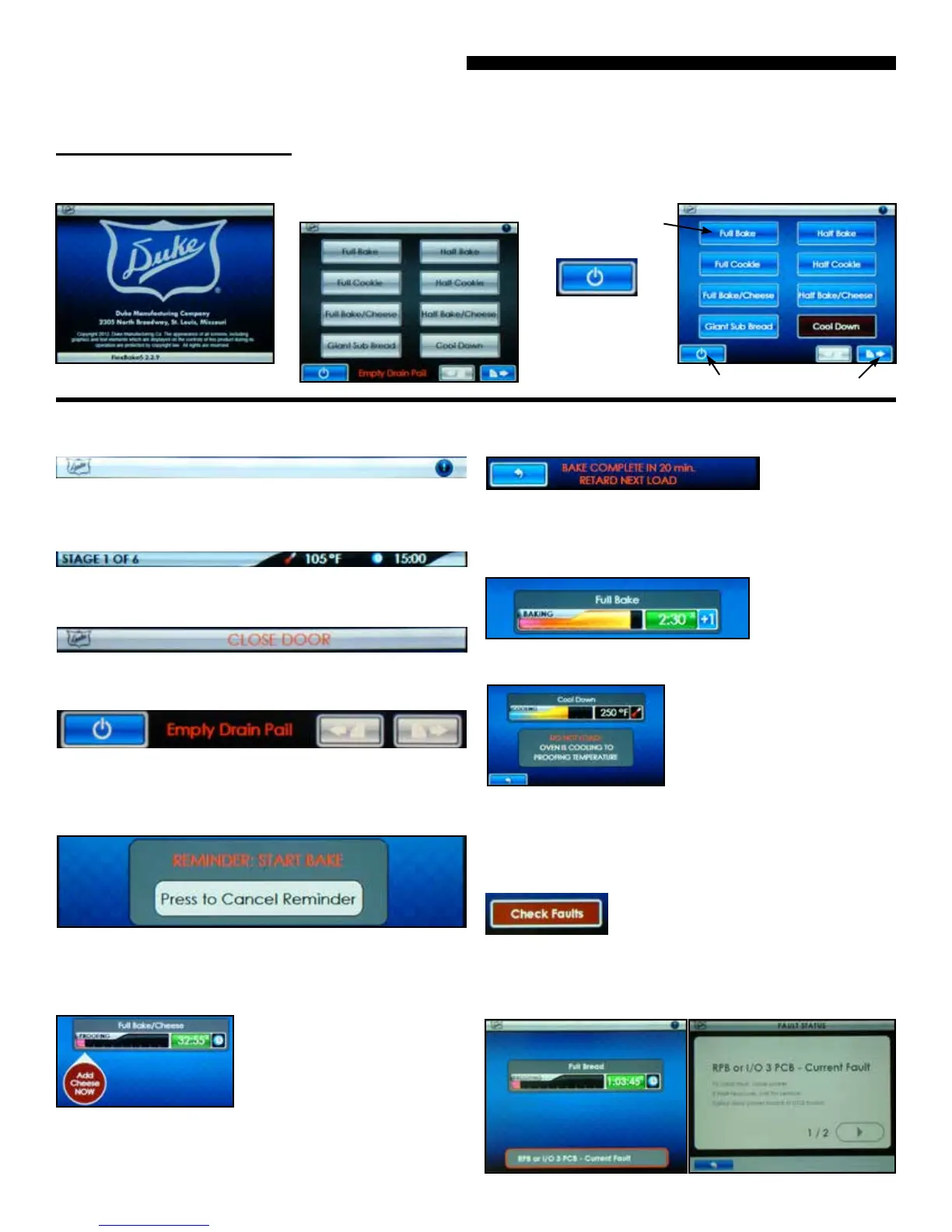 A start bake reminder message and alarm will alert the operator if