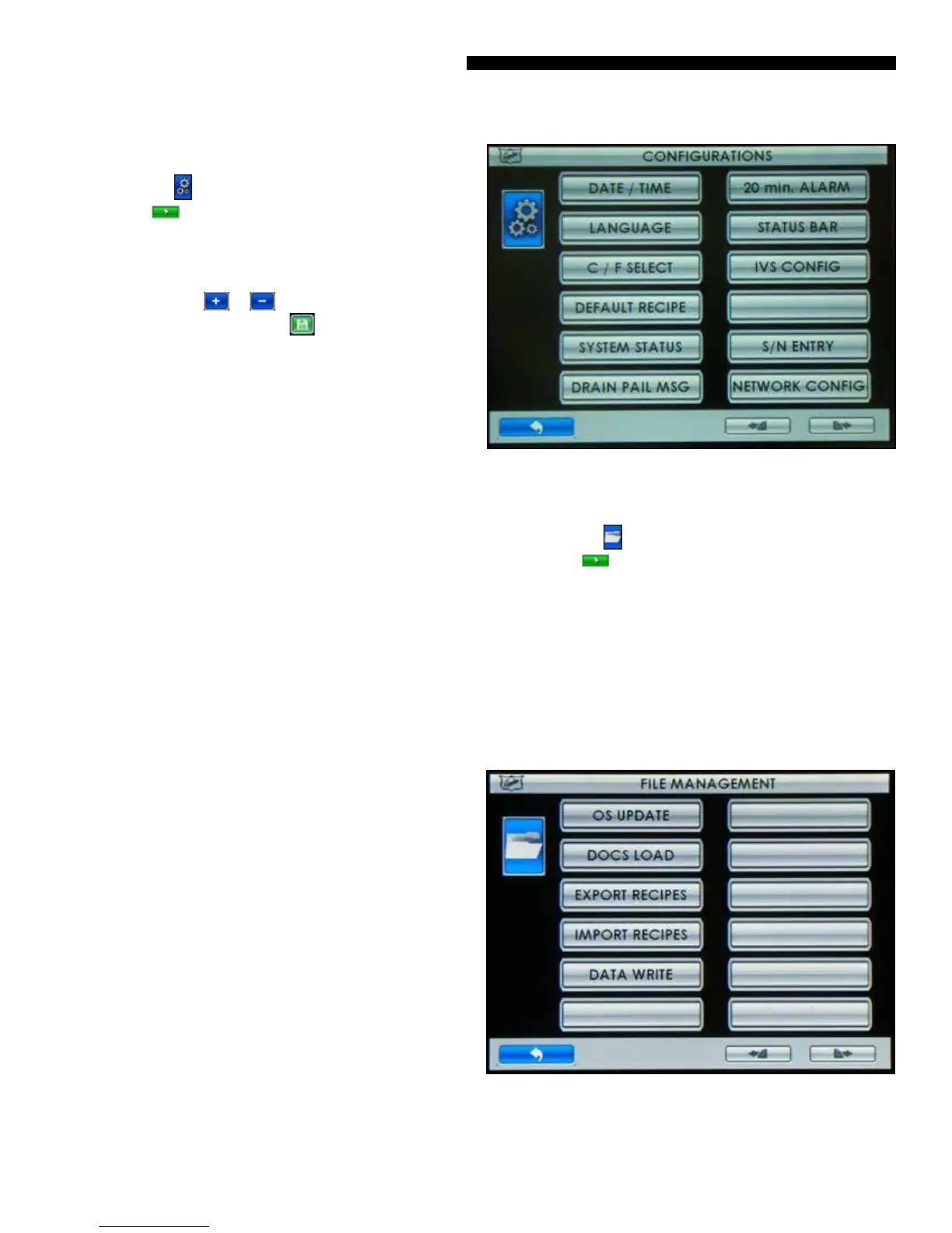 • DEFAULT RECIPE – Touching will reload factory defaults.