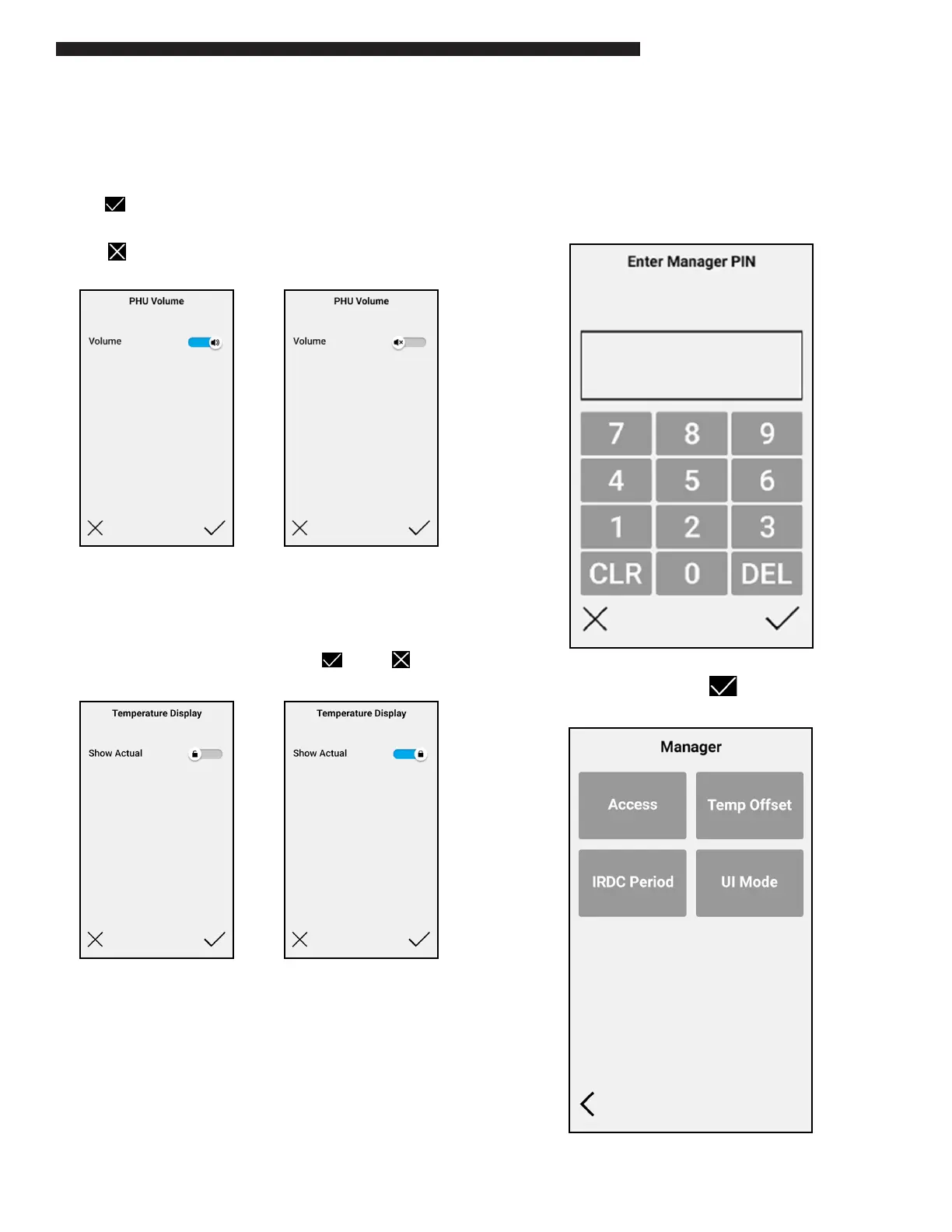 The MANAGER menu is PIN code protected and