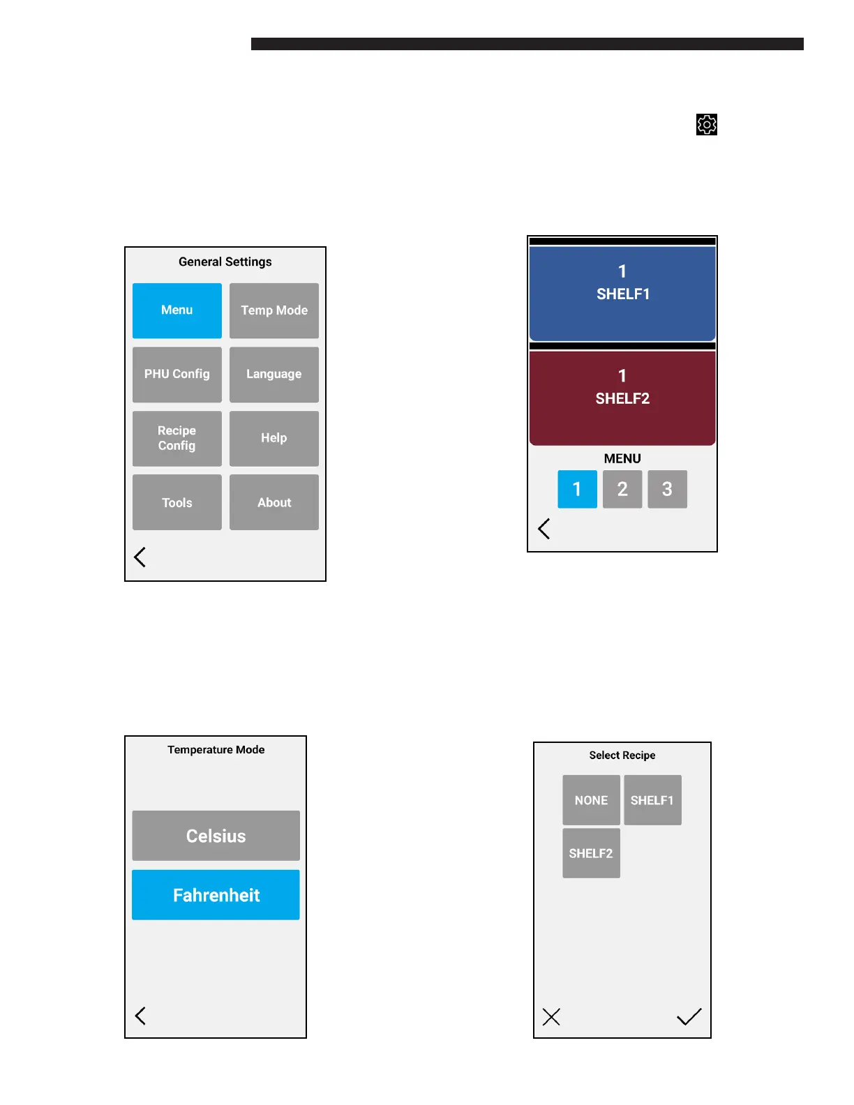 Several Settings are available on the RFDU. To enter the Settings menu click on the cog icon ( ) which is