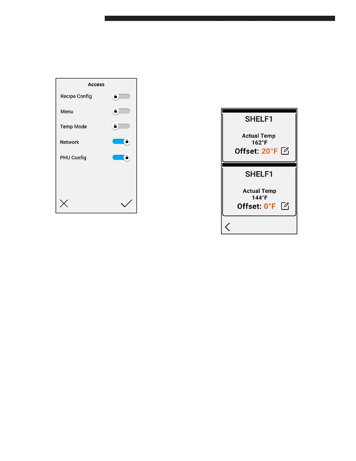 Each of the Recipe Cong, Menu, Temp Mode