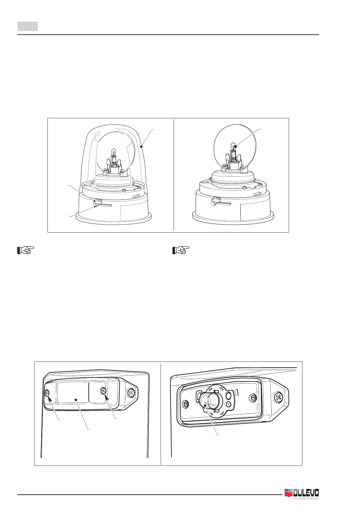 - Slightly push and rotate the blown lamp (4) to remove