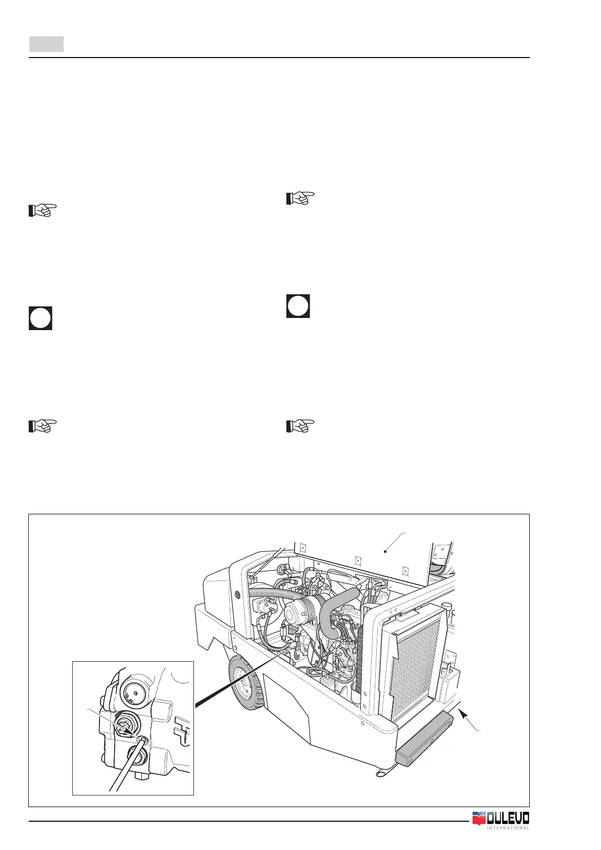 - Lift the hood (1) and gain access to the traction pump.