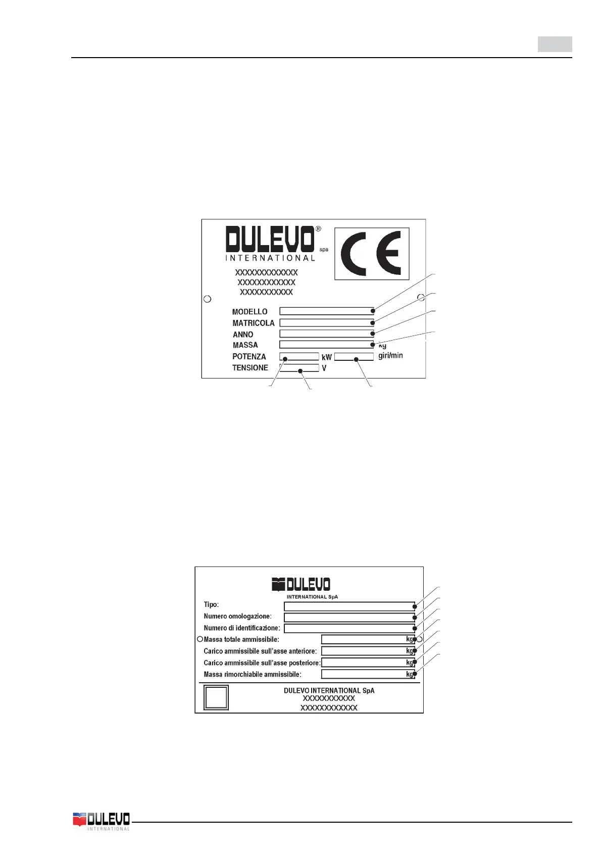 I dati presenti sulla targhetta di identificazione sono i