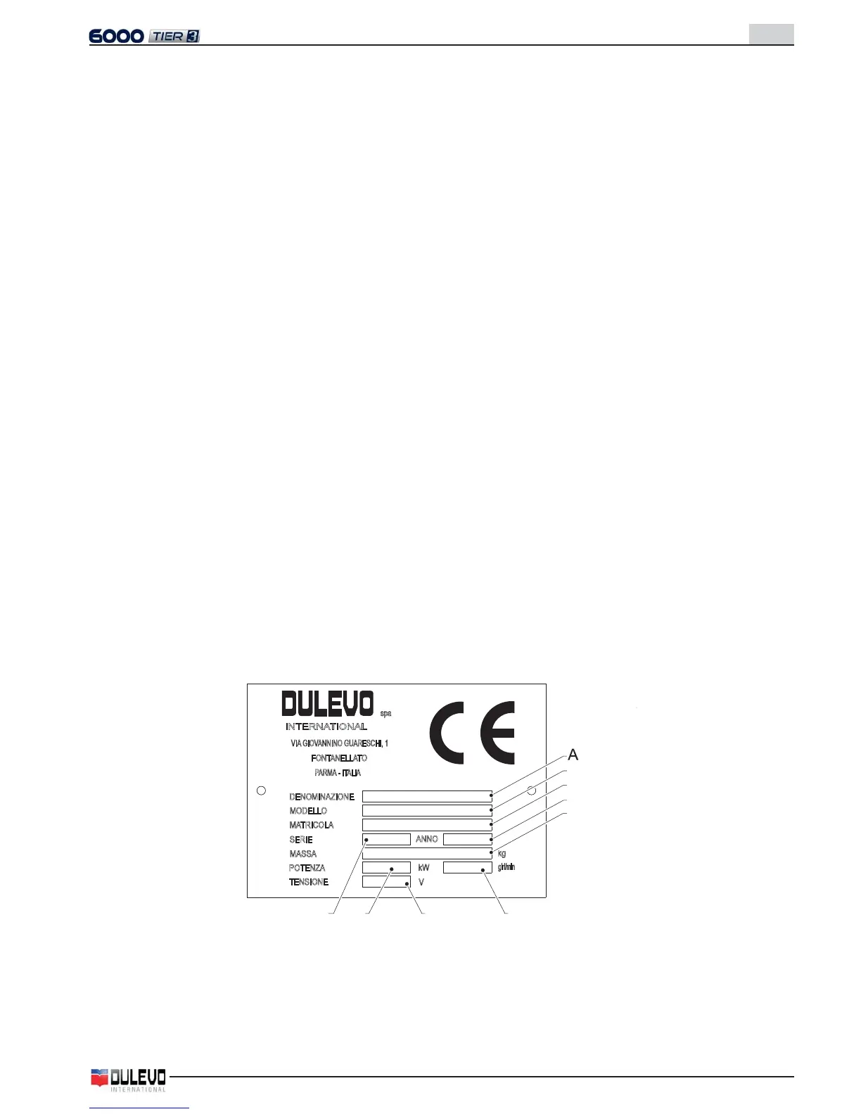 Targhetta posta all’interno della cabina di guida; i dati riportati