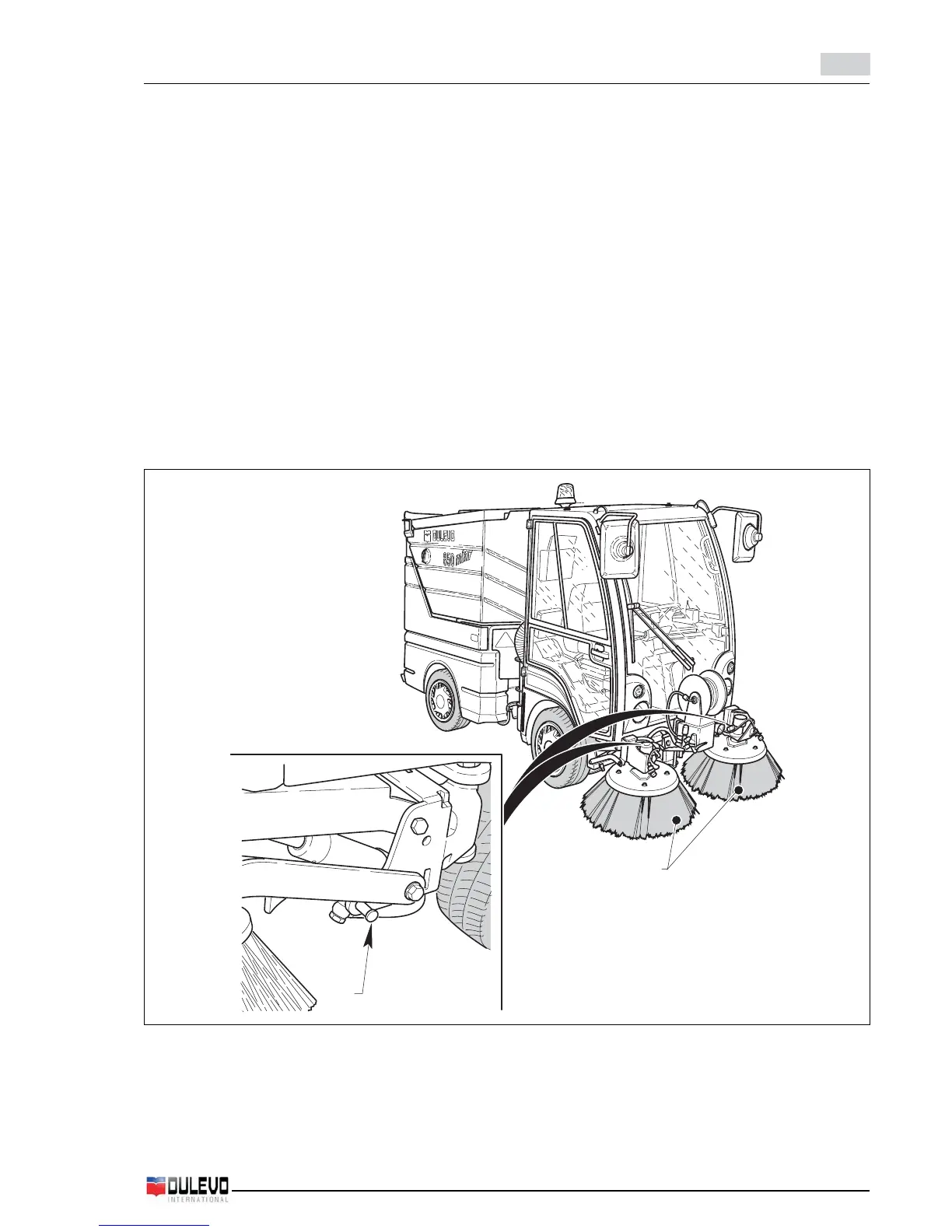 - Fasten the side brushes (1) with the pin (2) to prevent