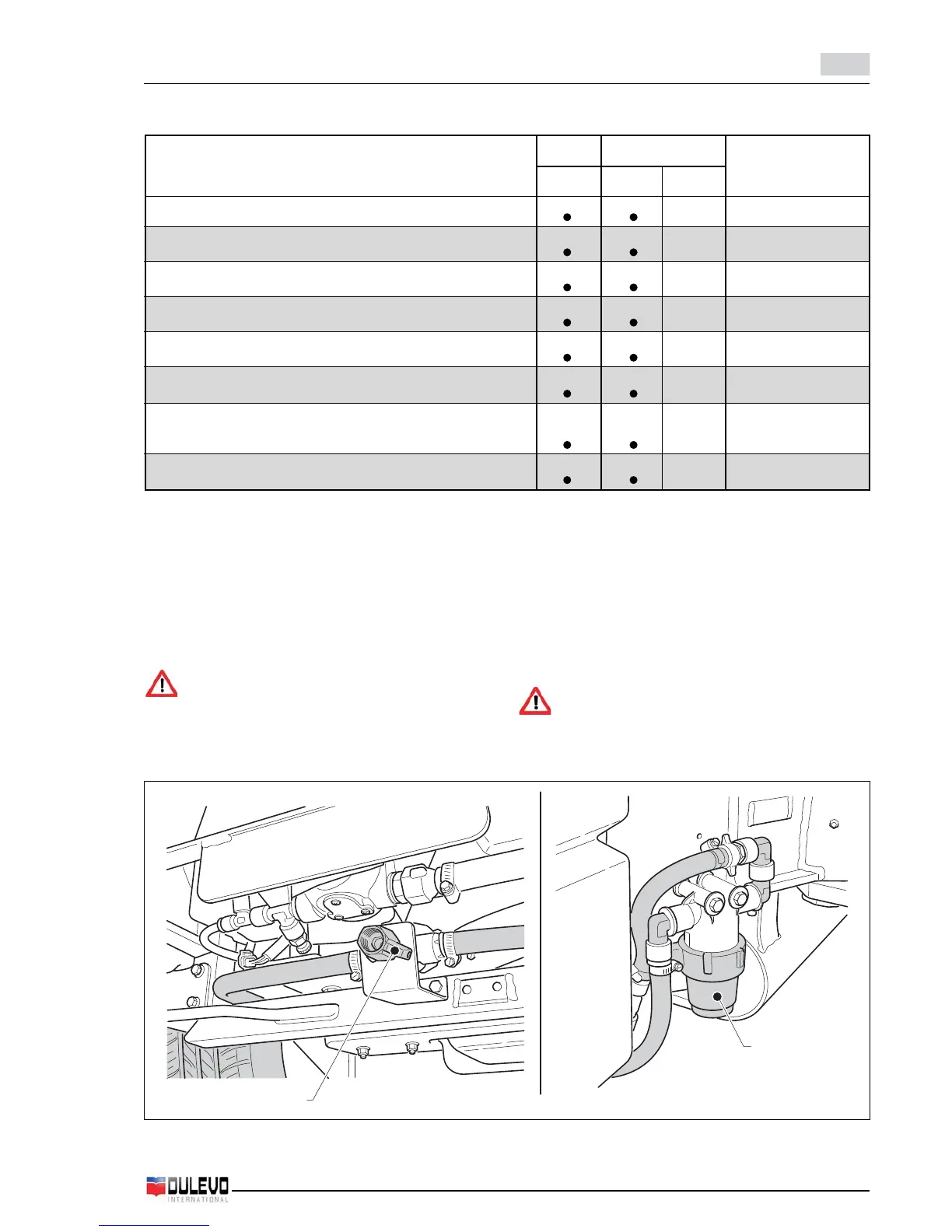Table of maintenance interventions to be carried out every 8 hours