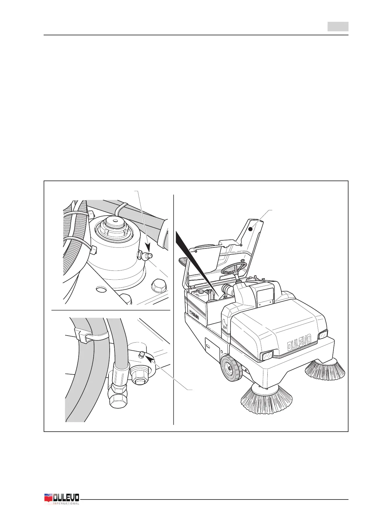 - Grease the articulated head of the hopper lifting