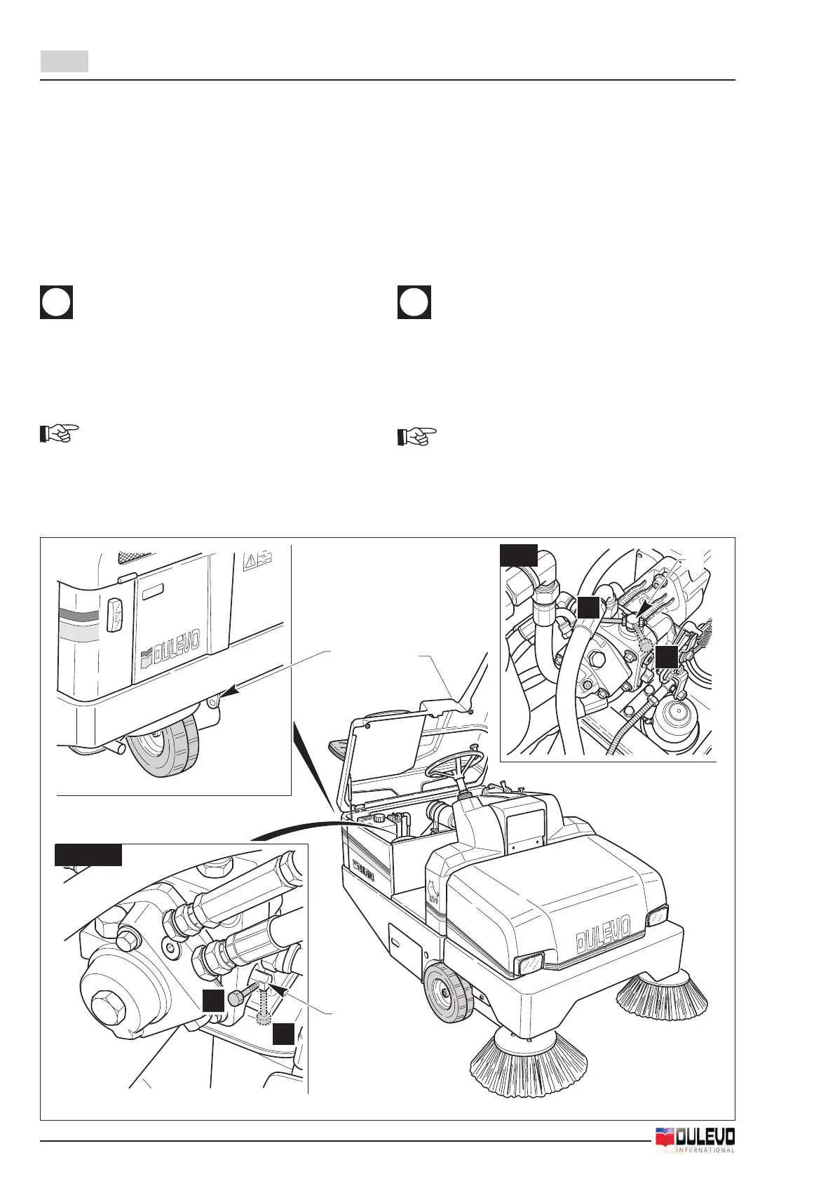- Open the by-pass valve (2) placed on the traction