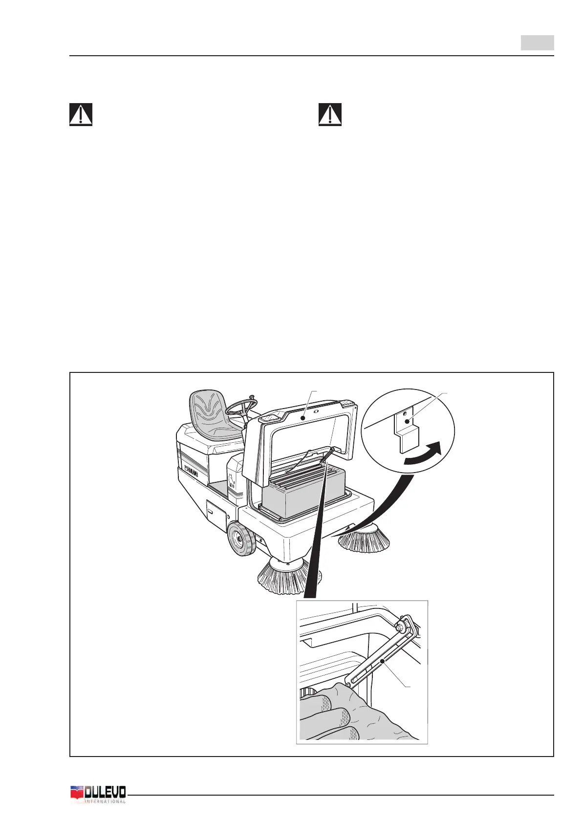 - Sollevare il cofano anteriore (2) e bloccarlo in posi-