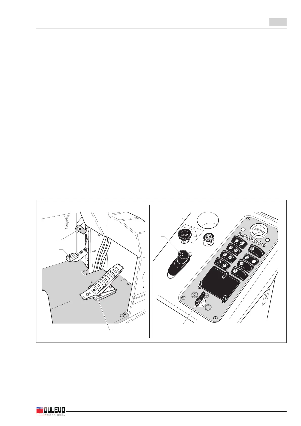 - Rilasciare il pedale di comando traslazione (1) e pre-