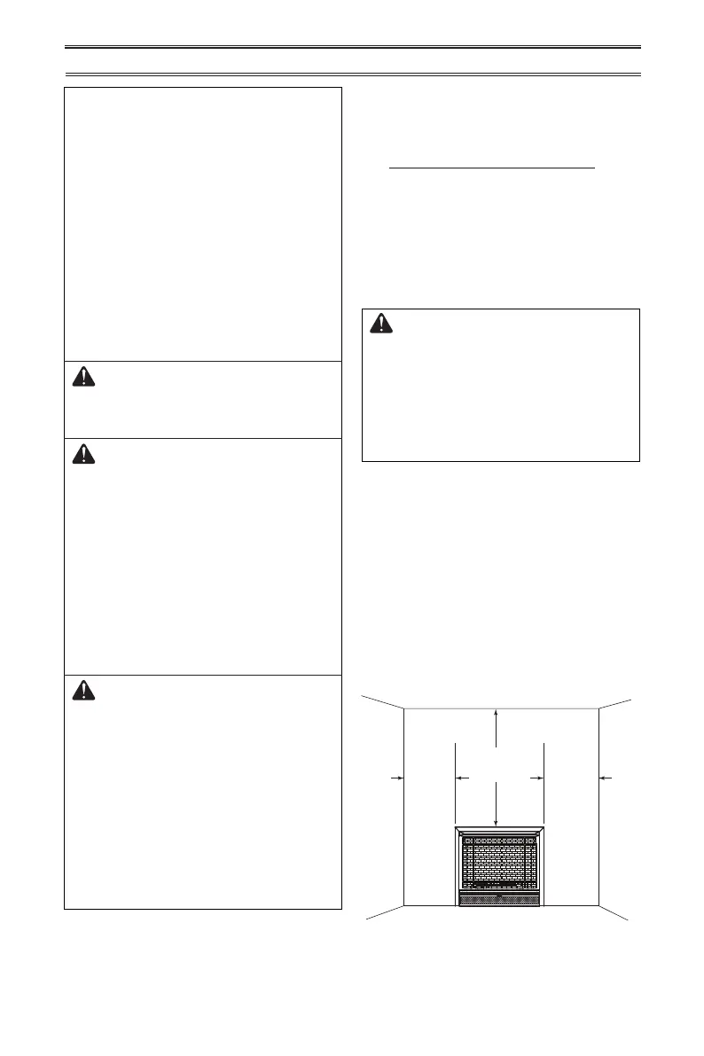 B. Clearances from the heater to the ceiling