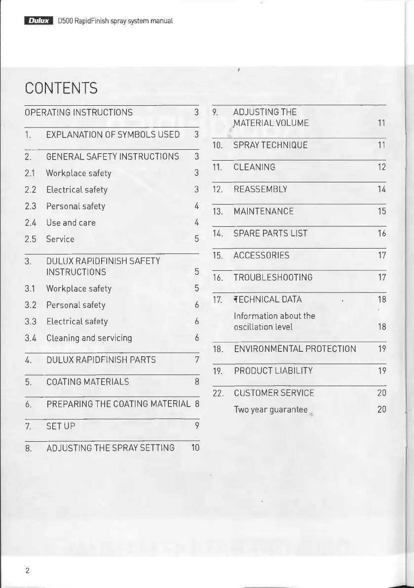 Dulux RapidFish D500 - Default Chapter; Table of Contents