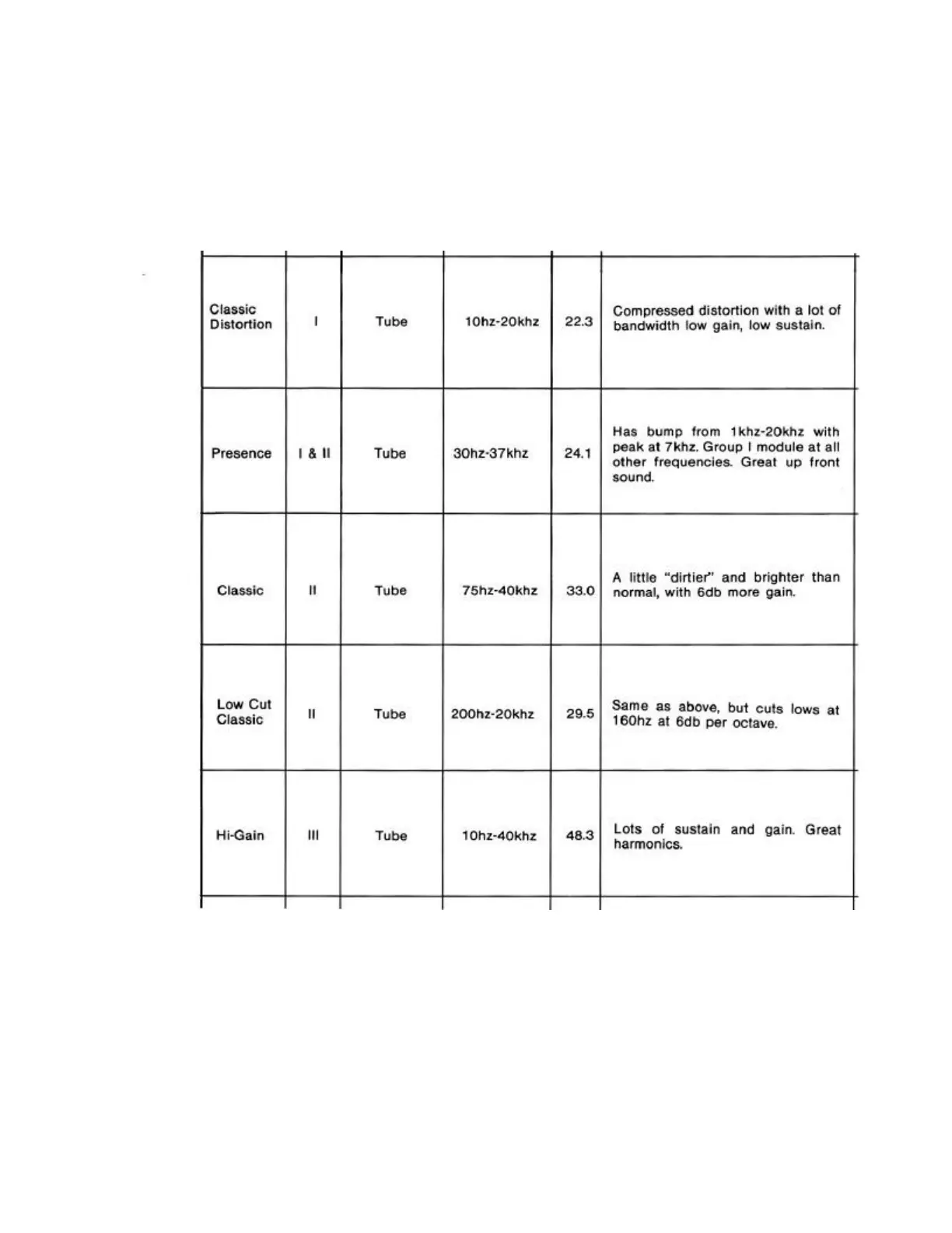 Duncan Convertible Head - Preamp Module Details (Continued); Classic Distortion and Presence Modules; Classic and Low Cut Classic Modules