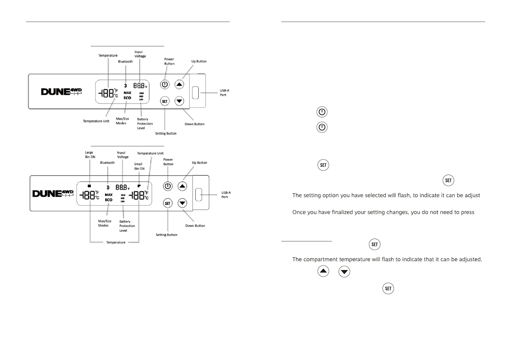 temperature of your Dune 4WD Fridge/Freezer unit. This will appear as a