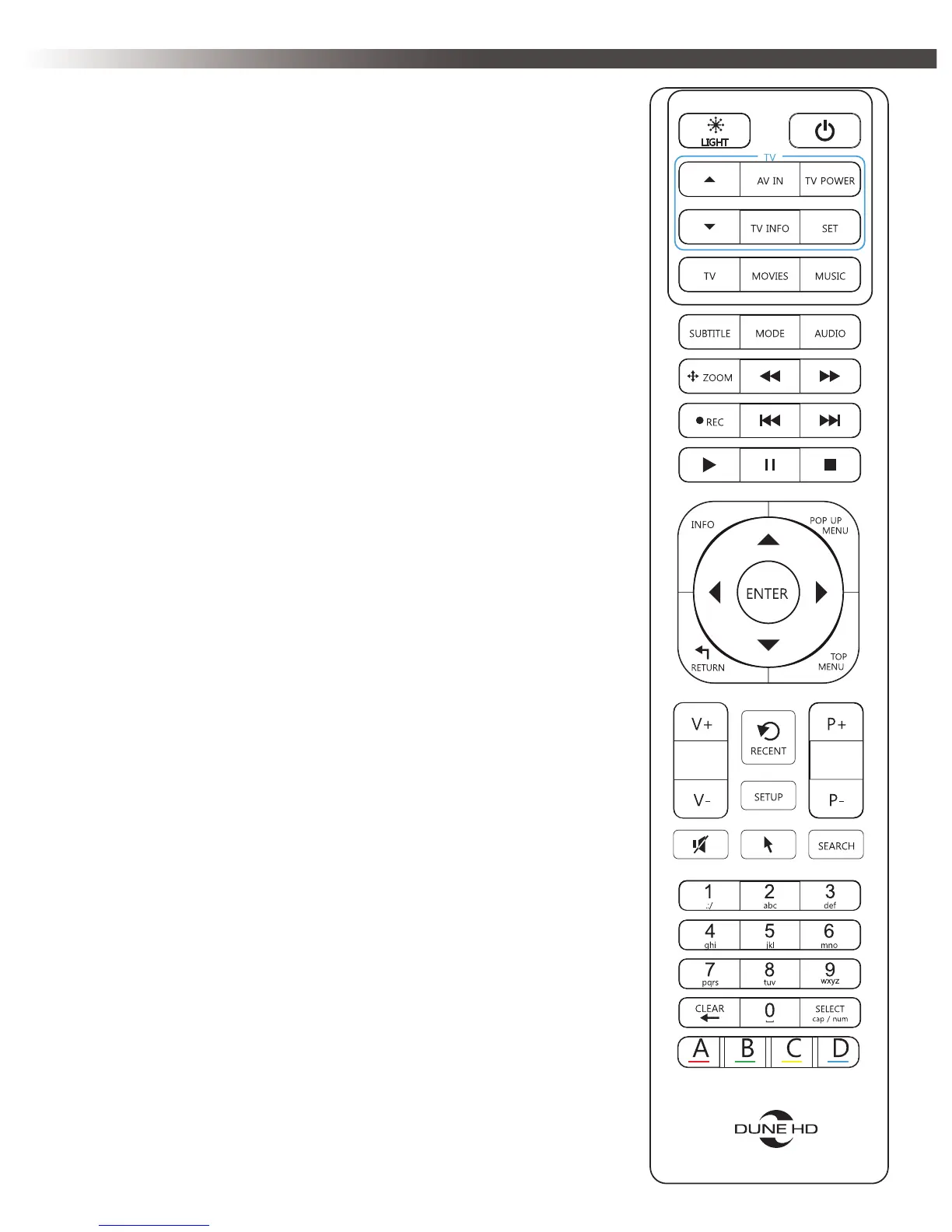 • TV section (UP, DOWN, AV IN, TV INFO, TV