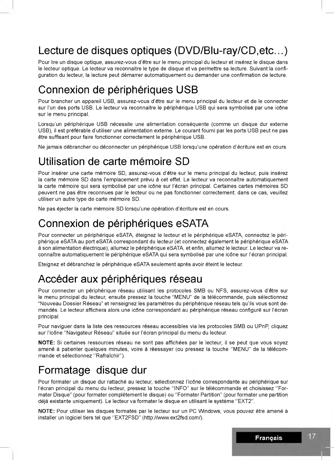 a son alimentation electrique), allumez le peripherique eSATA, et enfin, allumez le lecteur. Le lecteur va re