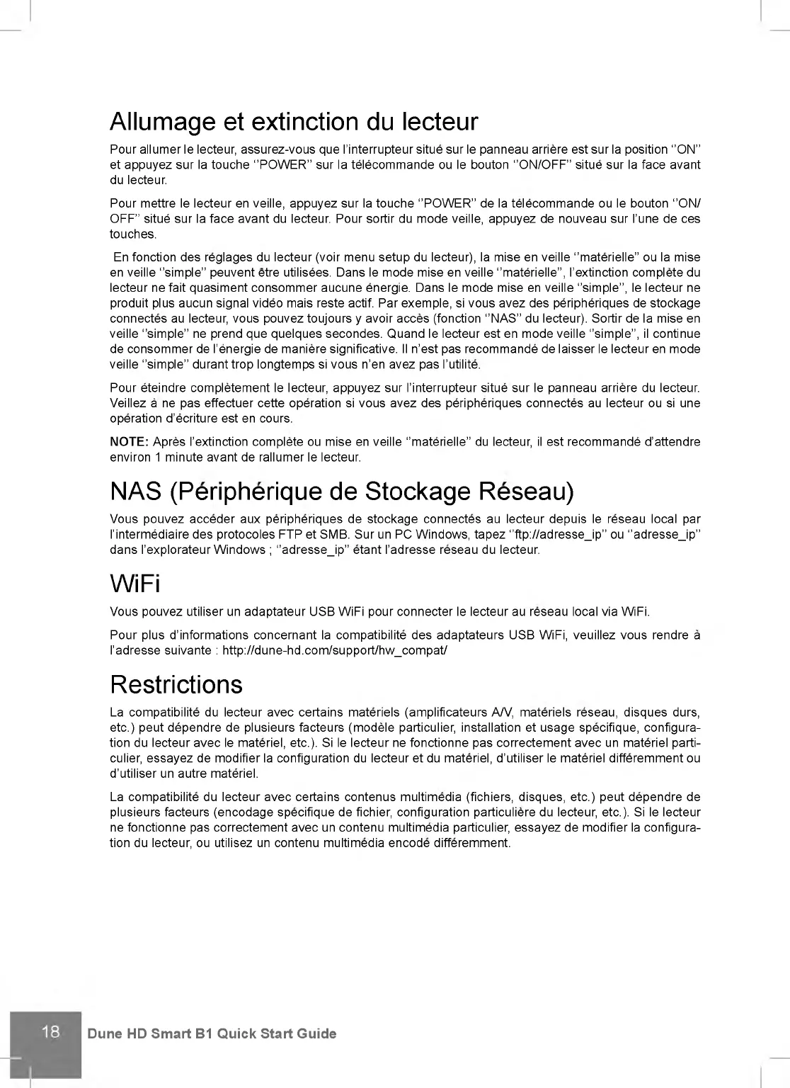 NOTE: Apres l'extinction complete ou mise en veille "materielle” du lecteur, il est recommande d'attendre