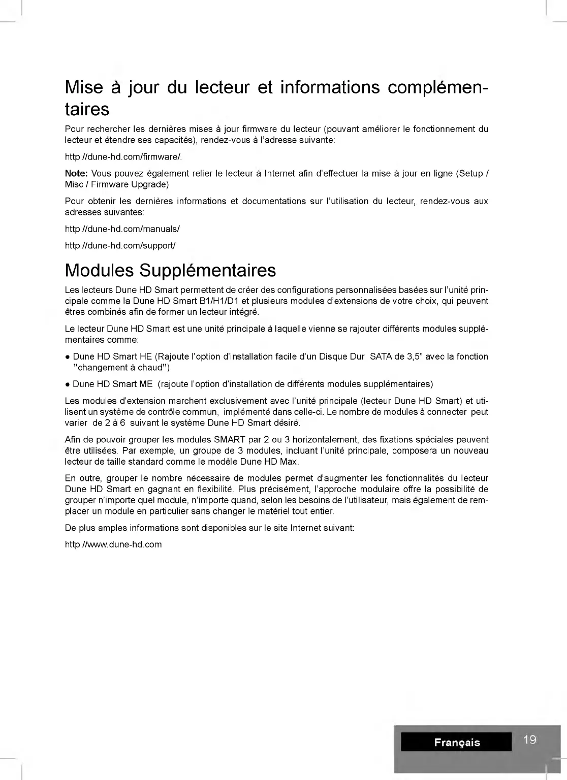 Les modules d'extension marchent exclusivement avec l'unite principale (lecteur Dune HD Smart) et uti-