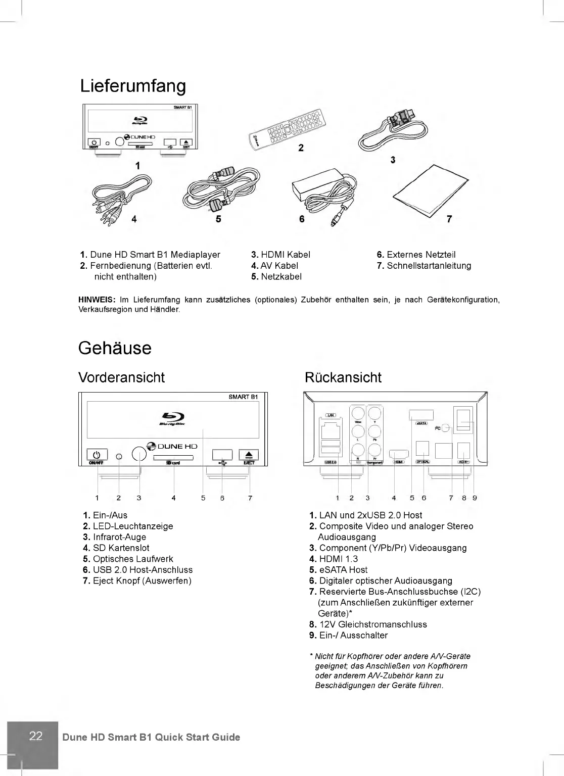 1. Dune HD Smart B1 Mediaplayer 3. HDMI Kabel 6. Externes Netzteil