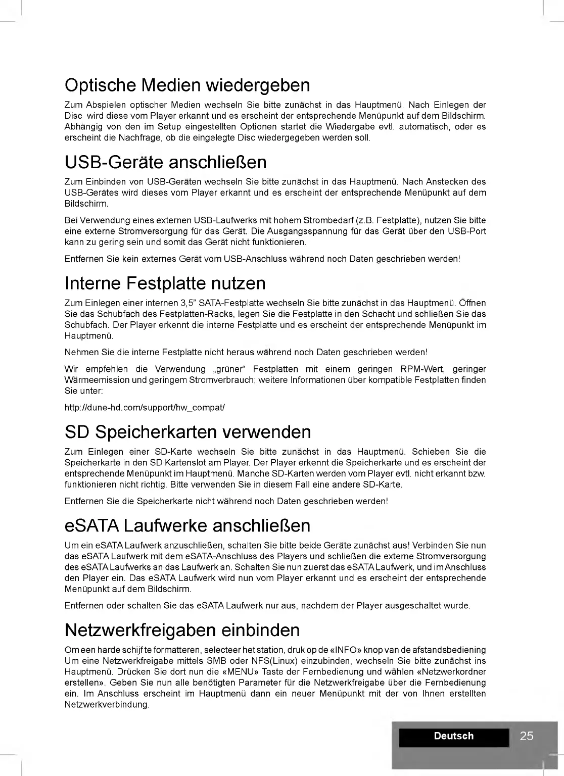 Entfernen oder schalten Sie das eSATA Laufwerk nur aus, nachdem der Player ausgeschaltet wurde.