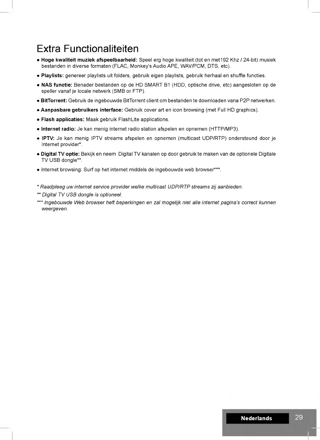 • IPTV: Je kan menig IPTV streams afspelen en opnemen (multicast UDP/RTP) ondersteund door je