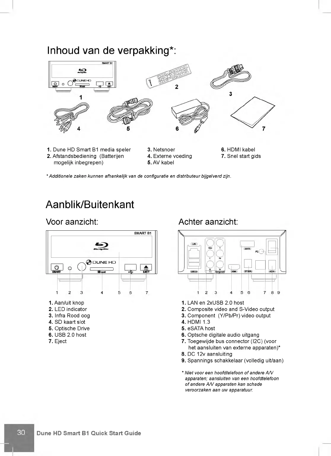 1. Dune HD Smart B1 media speler 3. Netsnoer 6. HDMI kabel