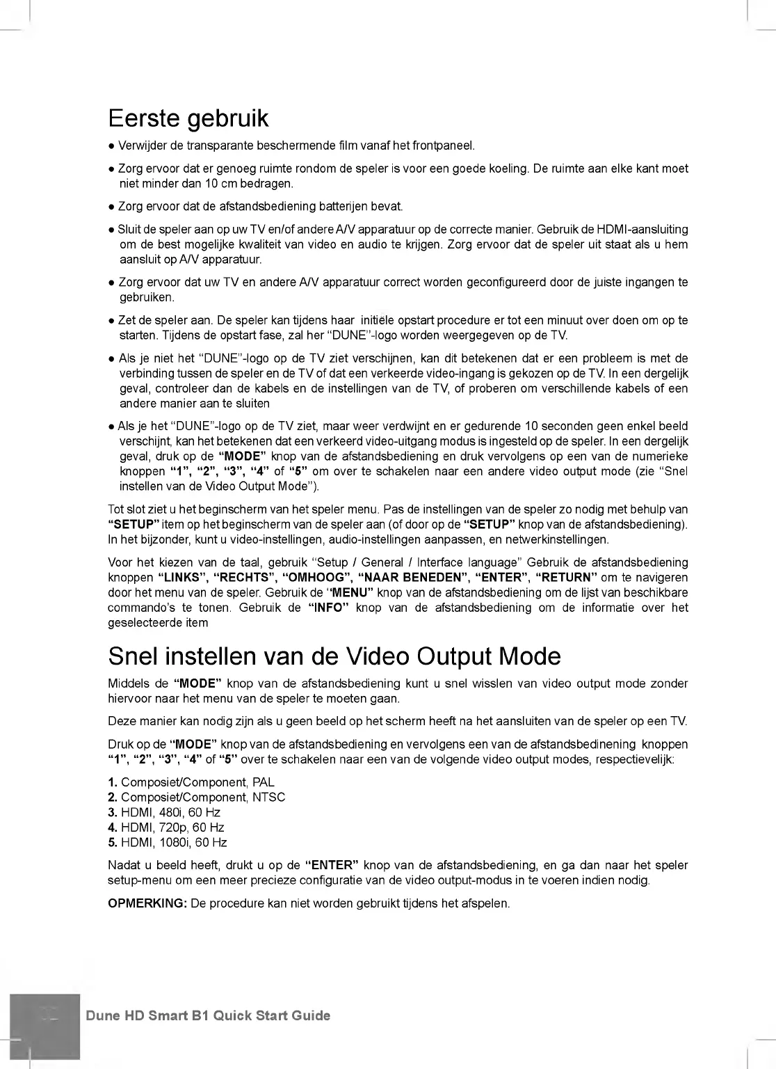 • Als je niet het “DUNE”-logo op de TV ziet verschijnen, kan dit betekenen dat er een probleem is met de