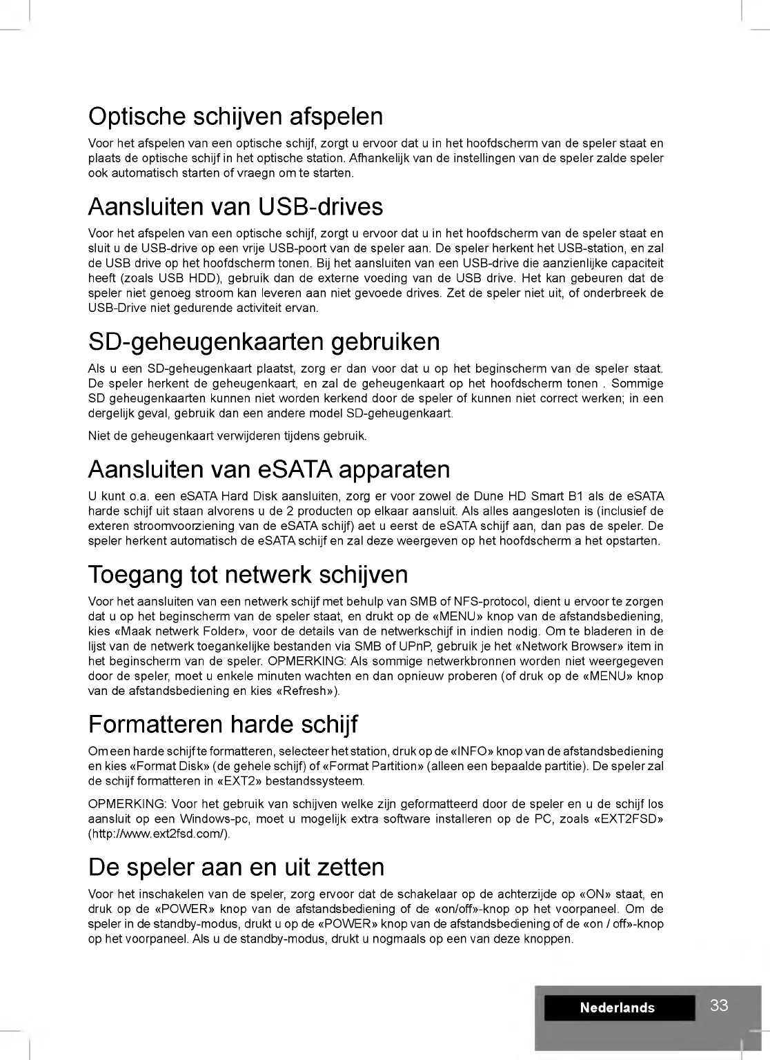 exteren stroomvoorziening van de eSATA schijf) aet u eerst de eSATA schijf aan, dan pas de speler. De