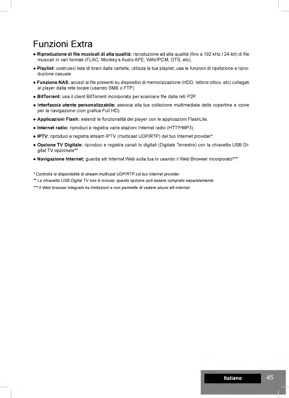 • Applicazioni Flash: estendi le funzionalita del player con le applicazioni FlashLite.
