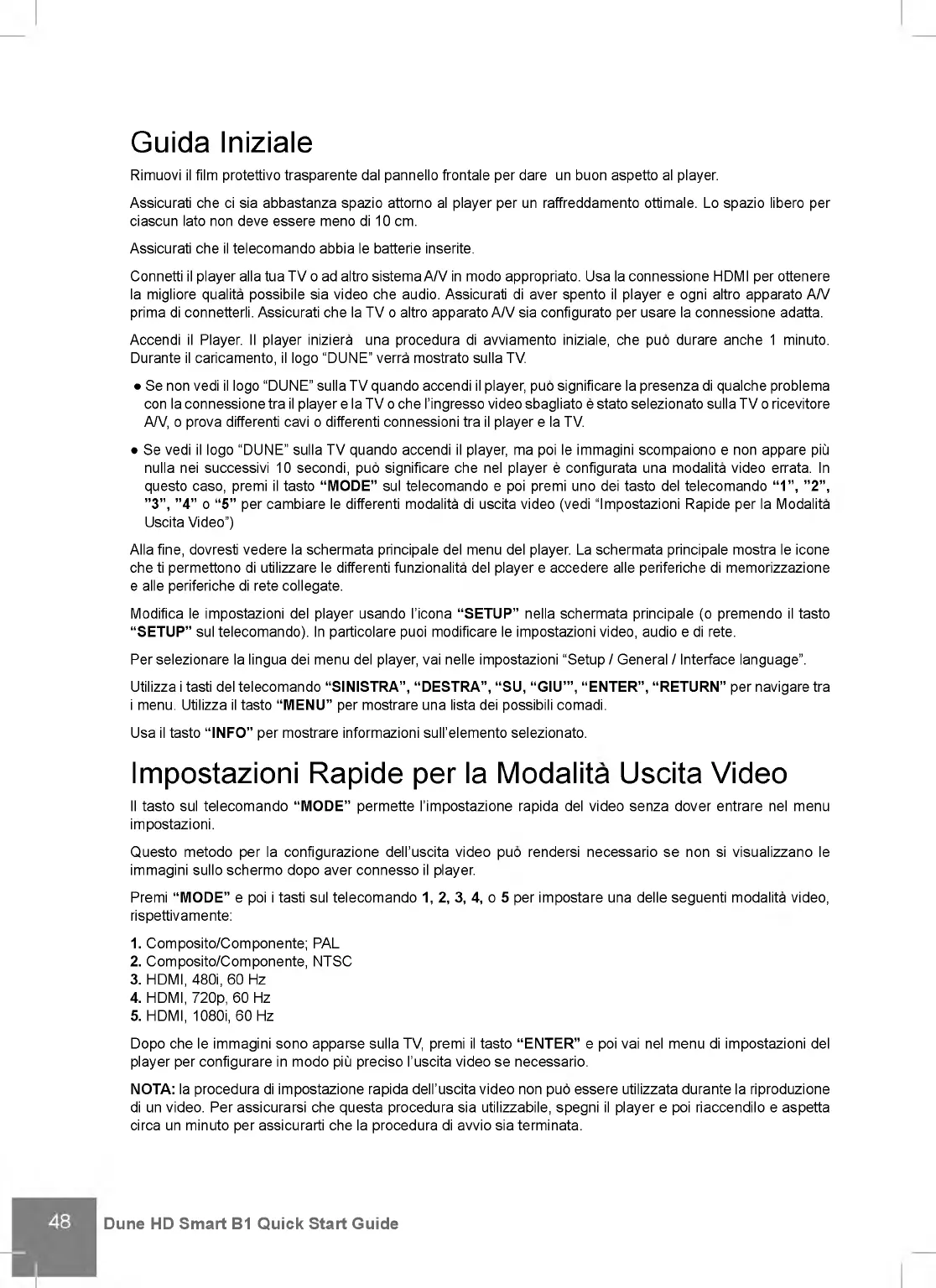 • Se non vedi il logo “DUNE” sulla TV quando accendi il player, puo significare la presenza di qualche problema
