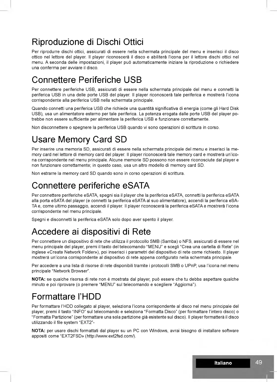 Per connettere periferiche eSATA, spegni sia il player che la periferica eSATA, connetti la periferica eSATA