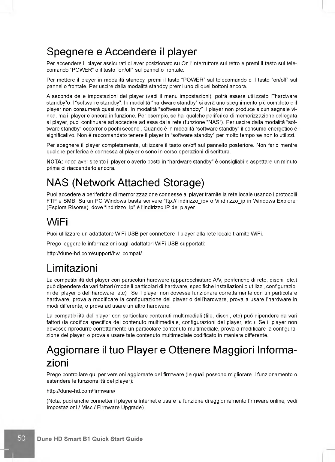 al player, puoi continuare ad accedere ad essa dalla rete (funzione “NAS”). Per uscire dalla modalita “sof
