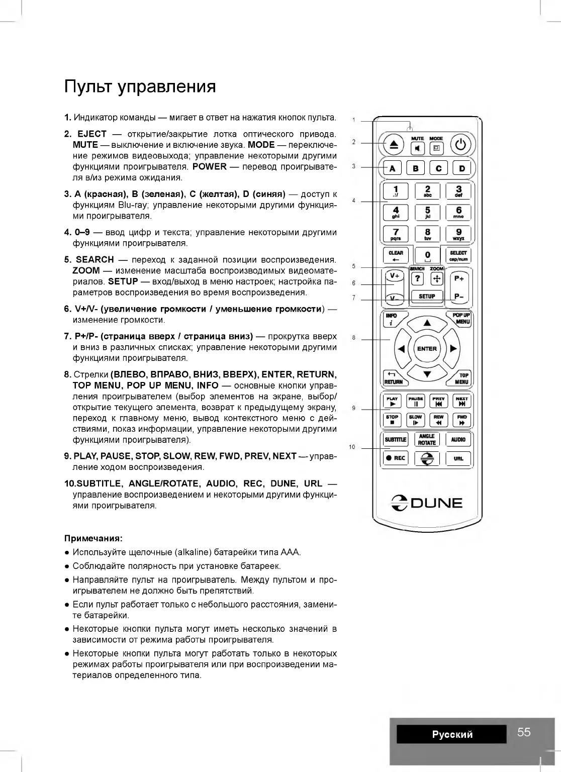 • Некоторые кнопки пульта могут иметь несколько значений в