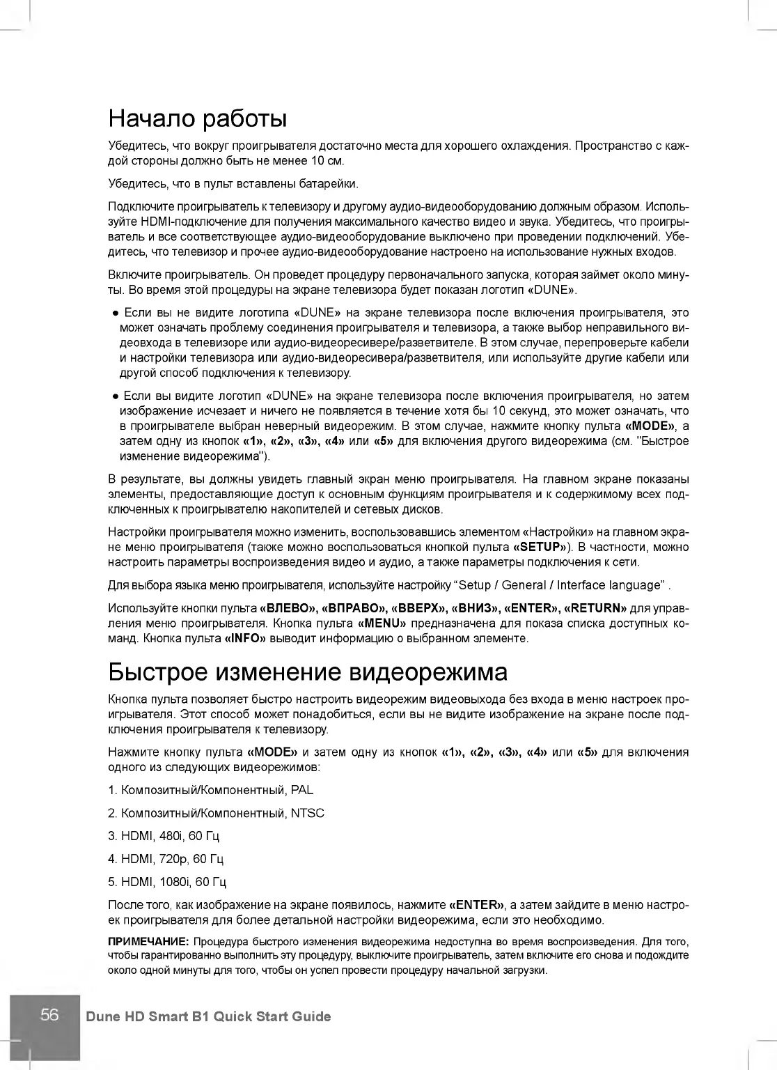 • Если вы видите логотип «DUNE» на экране телевизора после включения проигрывателя, но затем