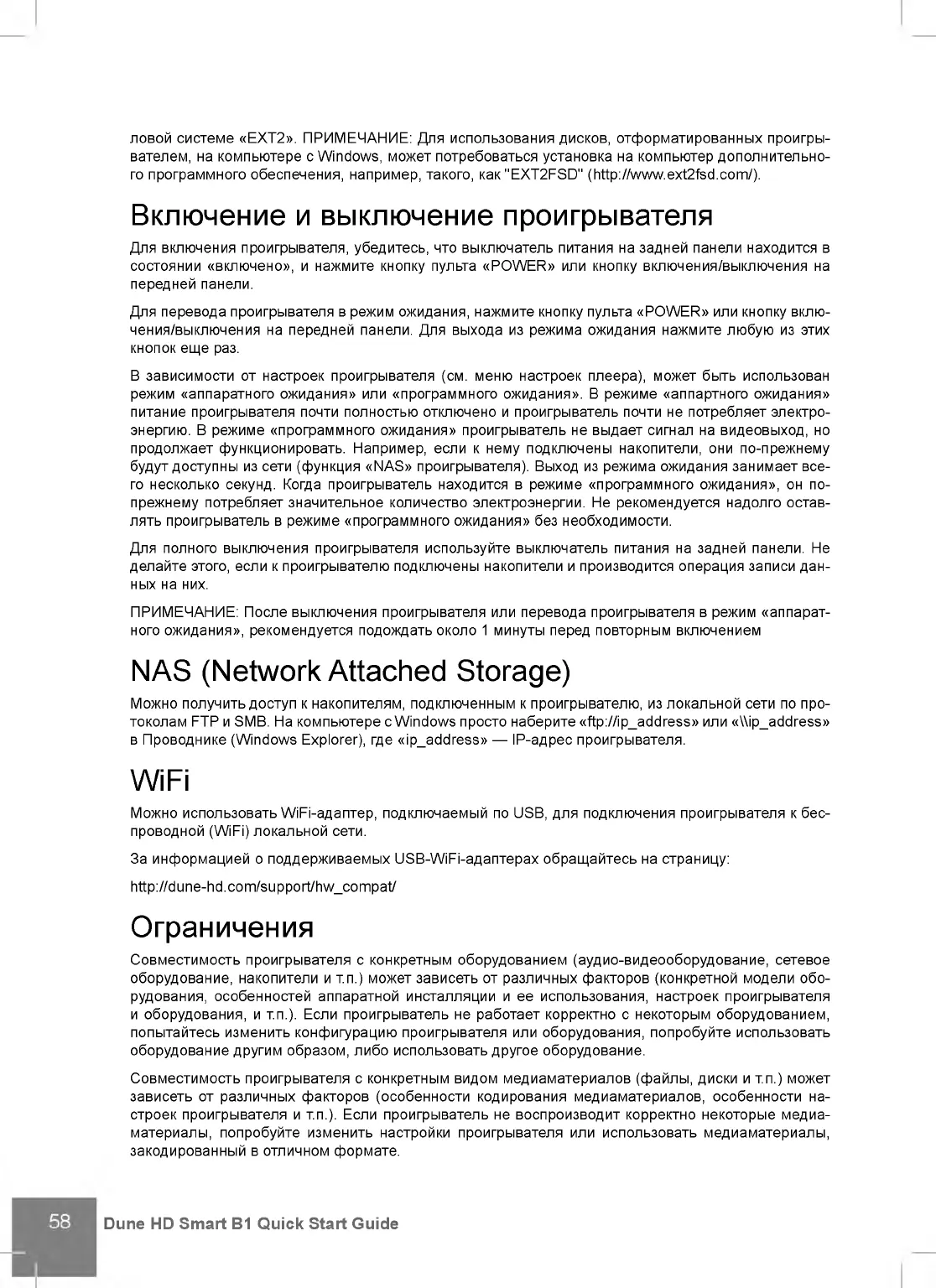 будут доступны из сети (функция «NAS» проигрывателя). Выход из режима ожидания занимает все