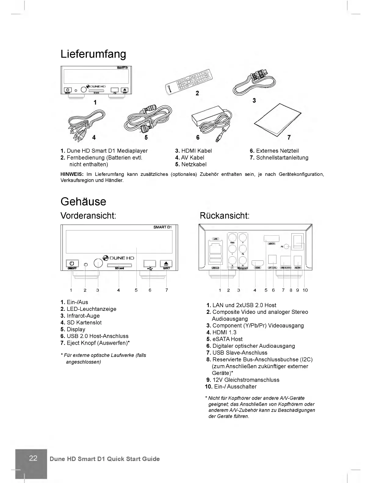 HINWEIS: Im Lieferumfang kann zusatzliches (optionales) Zubehor enthalten sein, je nach Geratekonfiguration,