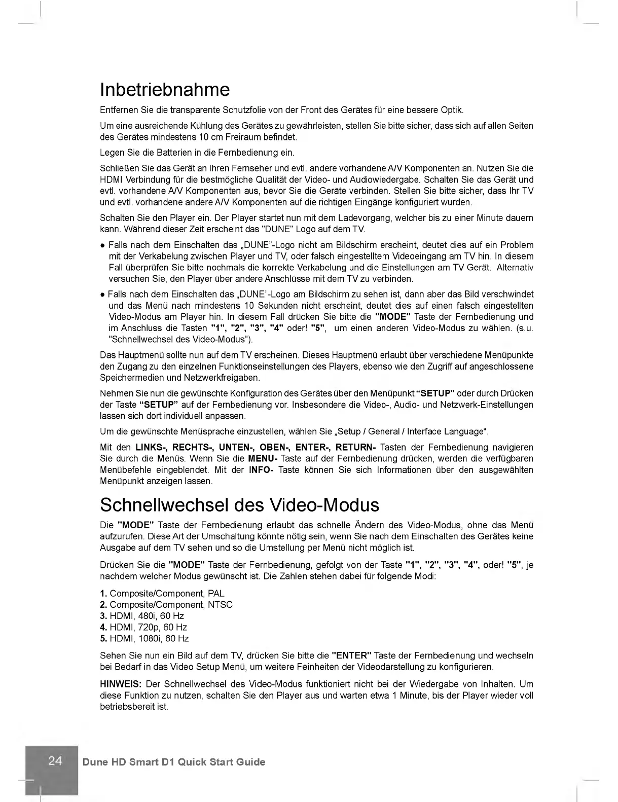 • Falls nach dem Einschalten das „DUNE”-Logo am Bildschirm zu sehen ist, dann aber das Bild verschwindet
