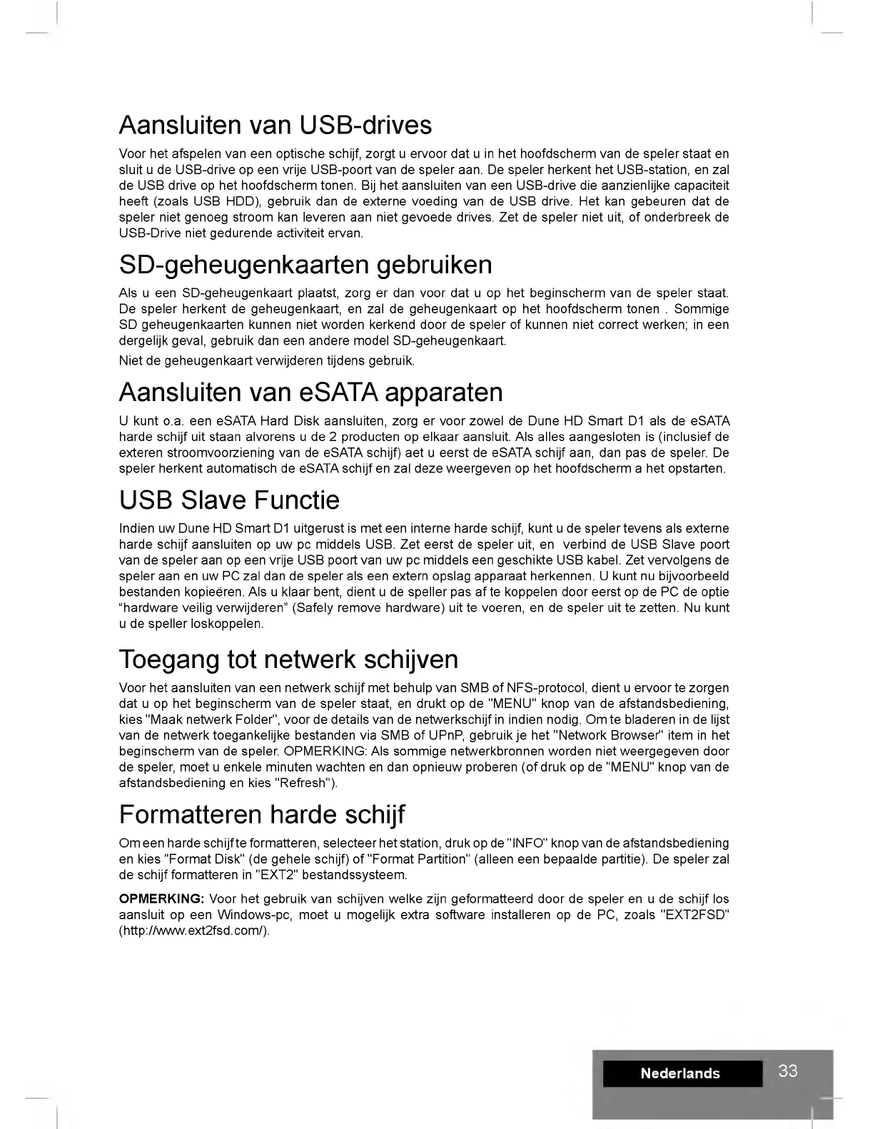 exteren stroomvoorziening van de eSATA schijf) aet u eerst de eSATA schijf aan, dan pas de speler. De