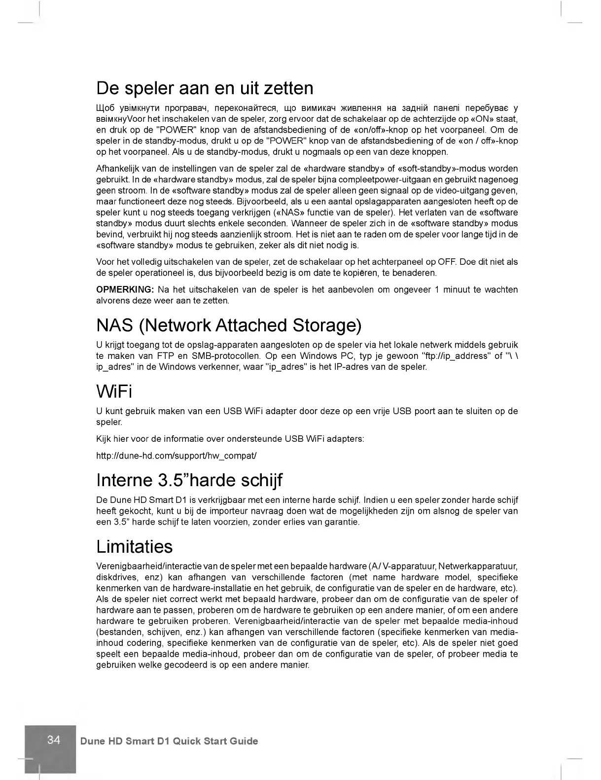 speler kunt u nog steeds toegang verkrijgen («NAS» functie van de speler). Het verlaten van de «software
