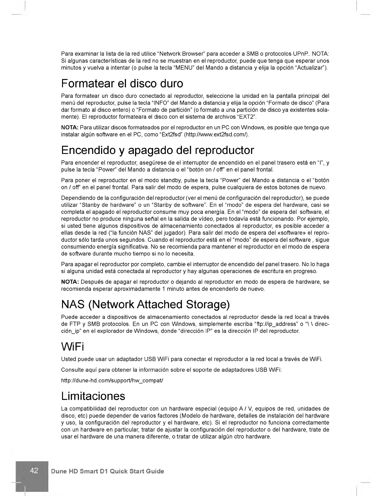 ellas desde la red (“la funcion NAS” del jugador). Para salir del modo de espera del «software» el repro